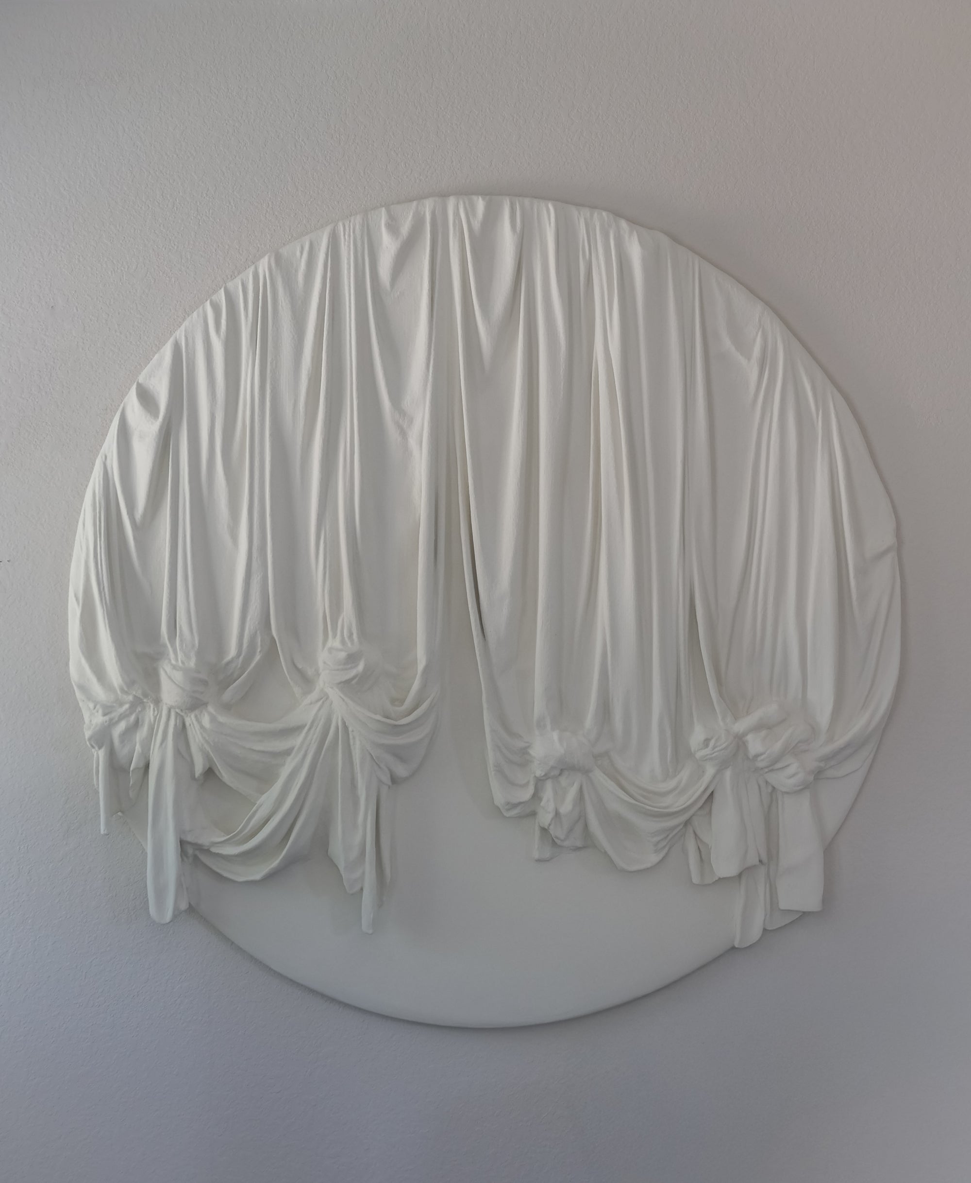 Entre mis recuerdos investigates the simulation of fabric using plaster and spackling paste through sculpted drapery, exploring how revisiting memories shapes one’s understanding of self. The piece reflects Curiel’s multidisciplinary practice, which transforms construction materials—learned from working alongside her father—into objects that honor labor, family, and cultural inheritance. Rooted in her Mexican heritage and the intimate gestures of her mother’s handiwork, this work continues her exploration of identity, memory, and the histories embedded in everyday materials.